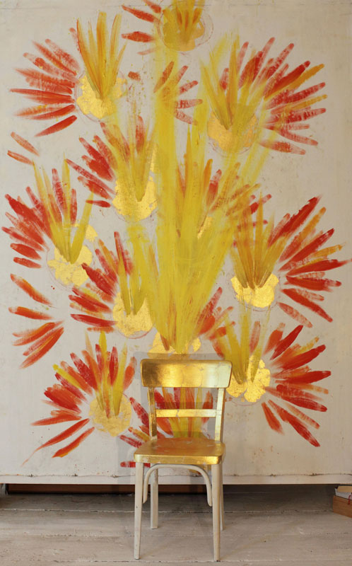 2- teilig / a)Öl, Blattgold, Leinwand, bemalter Vollholzrahmen, b) Vollholzsessel, Öl, Blattgold , 243 x 197cm,