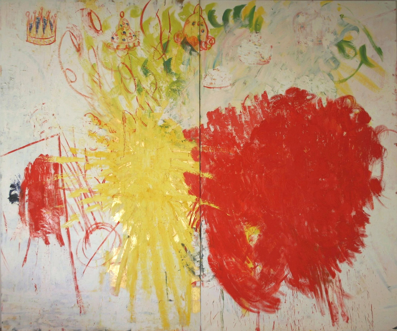 2-teilig, Öl, Blattgold, Leinwand, 180 x 300cm